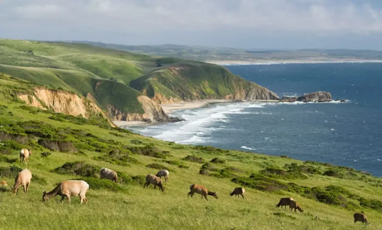 Point Reyes国家海岸公园是一个拥有丰富生态系统和壮丽景观的自然保护区。这里有广阔的草原、海岸线和森林,是野生动物的栖息地。你可以在这里观赏到各种鸟类、海洋哺乳动物和稀有植物。每年冬季,这里是观看灰鲸迁徙的最佳地点,你可以在灯塔附近的观鲸平台上观察这些巨大的海洋生物。公园内还有许多徒步小道,适合不同水平的徒步爱好者,是一个探索自然和野生动物的好地方。